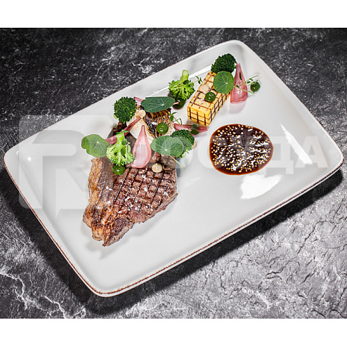 Блюдо прямоугольное 23x16см, цв. белый, коричневый край «RETRO» Bonna (кр12) фарфор Moove