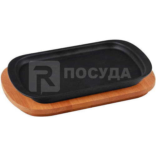 Блюдо чугун на деревянной подставке 32х20см LAVA