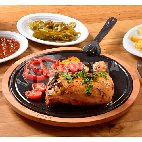 Вы можете дешево купить крупным и мелким оптом Блюдо чугун на деревянной подставке d29 см LAVA (артикул LV HRC HP 29 AS 261 IR) от производителя LAVA