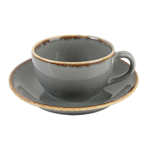 Вы можете дешево купить крупным и мелким оптом Блюдце d16см для чайной чашки, цв.темно-серый «Seasons Dark Gray» Porland (кр24) фарфор (артикул 132115 темно-серый) от производителя Porland