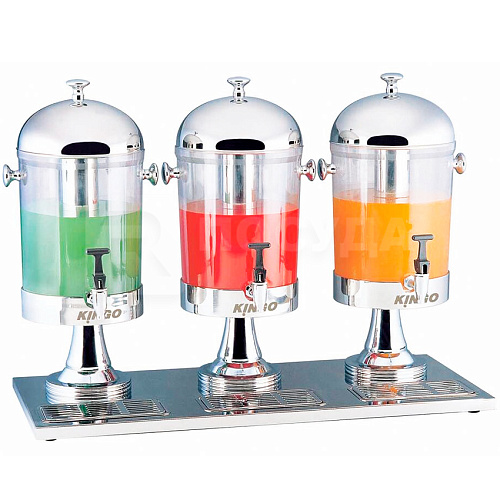 Вы можете дешево купить крупным и мелким оптом Диспенсер для холодных напитков 3 колбы по 8л нерж./пластик «KINGO-HOTEL» Kingo (артикул 10403-2---KINGO) от производителя Kingo