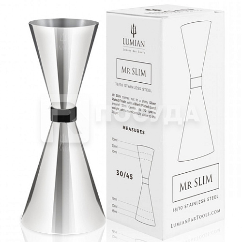 Вы можете дешево купить крупным и мелким оптом Джиггер 30/45 мл, нерж, цв.хром, «Mr Slim Black Ruby», Lumian (артикул L0236) от производителя Lumian
