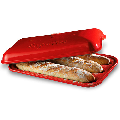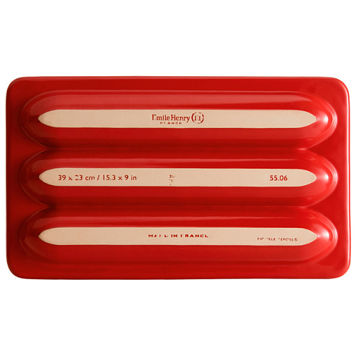 Вы можете дешево купить крупным и мелким оптом _Форма для выпечки багетов 39x23см h10см керамика, цв. красный «Les Secrets» Emile Henry (артикул 550634\\EH) от производителя Emile Henry