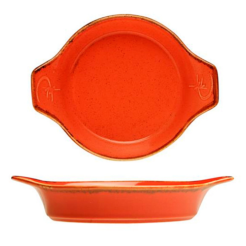 _Форма для запекания с ручками 350мл d17см h4см, цв.оранжевый «Seasons Orange» Porland (кр12) фарфор