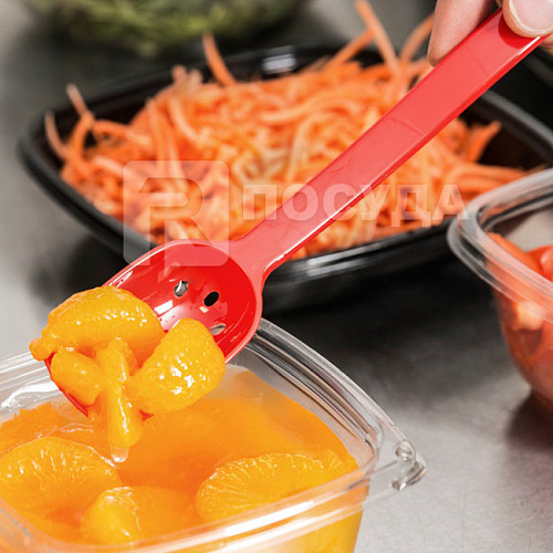 Вы можете дешево купить крупным и мелким оптом Ложка гарнирная перфорированная 26см п/к цв.красный MACO (артикул P-004-RED) от производителя MACO