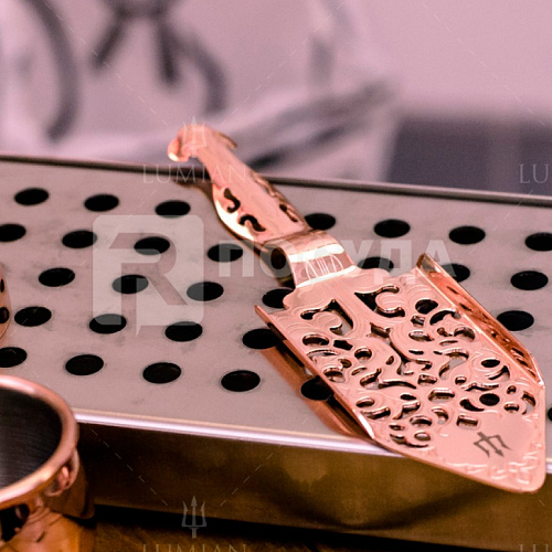 Профессиональная ложка для приготовления абсента от итальянского бренда Lumian. Отверстия с перфорацией позволяют фильтровать жидкость, которая заливается на кусочек сахара, растворяя ее.