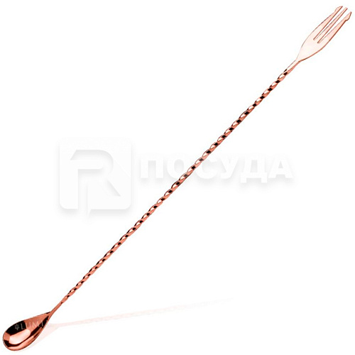 Ложка барная с вилочкой 40см нерж., цв.медь «Trident» Lumian