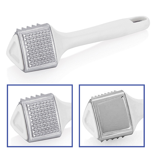 | Описание товара краткое | алюминиевое литье. С пластиковой ручкой, 3 стороны для отбивания с мелкими и крупными шипами, широкая площадь сторон для отбивания. Вес = 0,65 кг. |