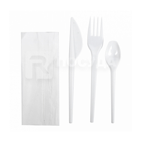 Набор 17 см, индивидуальный из ножа, вилки, салфетки, чайной ложки, белый PS, Garcia de Pou