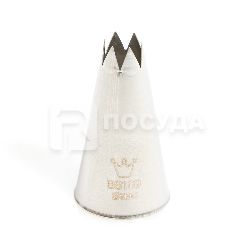 Насадка из нержавеющей стали для кондитерских мешков в форме французской звезды с диаметром выходного отверстия от 2 до 20 мм.