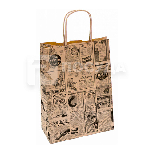 Пакет 20+10х29 см, бумажный, с ручками «Газета», «TIMES», Garcia de Pou