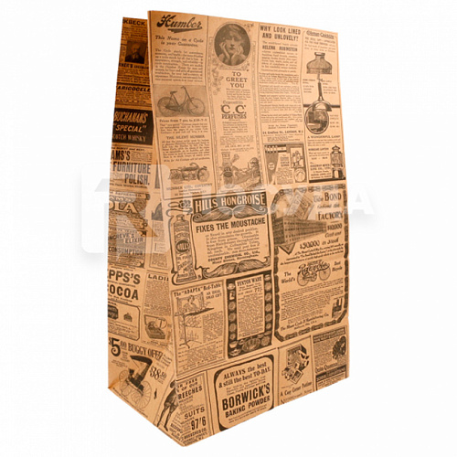 Пакет 22+14х37 см, бумажный, без ручек, для покупок «Газета», «TIMES», Garcia de Pou