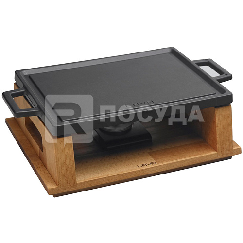 Вы можете дешево купить крупным и мелким оптом Сковорода-гриль на деревянной подставке 20х30см чугун, с ручками, с подогревом LAVA (артикул LV ECO HP 2230 T13 K44) от производителя LAVA