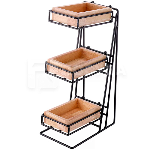 Вы можете дешево купить крупным и мелким оптом Подставка фуршетная 13x23см h40см нерж. + 3 глубоких блюда дерево «Горка» Sunnex (артикул M029-5-UK) от производителя Sunnex