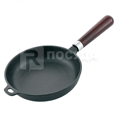 Сковорода чугун d20,5см h4см с деревянной ручкой (индукция) P.L.Proff Cuisine