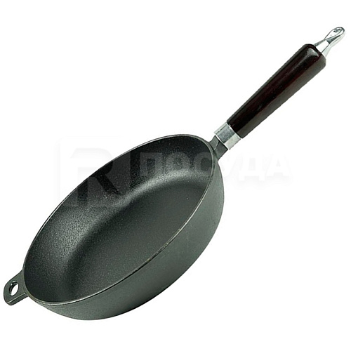 Сковорода чугун d26cм h5,6см с деревянной ручкой (индукция) P.L.ProffCuisine