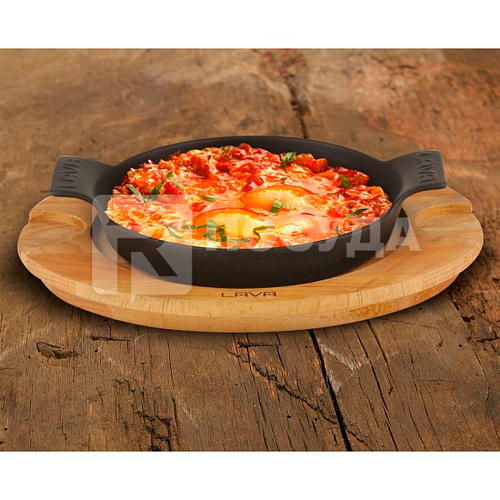 Вы можете дешево купить крупным и мелким оптом Сковорода на деревянной подставке d18см чугун, с ручками LAVA (артикул LV ECO Y TV 18 K4) от производителя LAVA