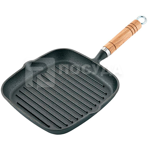 Сковорода-гриль 22x22см h2,5см чугун/ручка дерево (индукция) P.L.Proff Cuisine