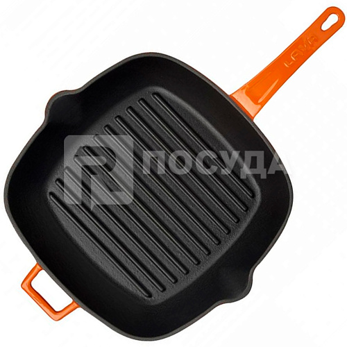 Вы можете дешево купить крупным и мелким оптом Сковорода-гриль 26x26см чугун, эмалированная, цв.оранжевый LAVA (артикул LV P GT 2626 K0 O) от производителя LAVA