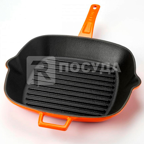 Сковорода-гриль 26x26см чугун, эмалированная, цв.оранжевый LAVA