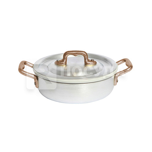 Сковорода алюмин. d14см h4см с крышкой, фарфор.вставкой и с 2 бронзов. ручками «TAVOLA» Ottinetti