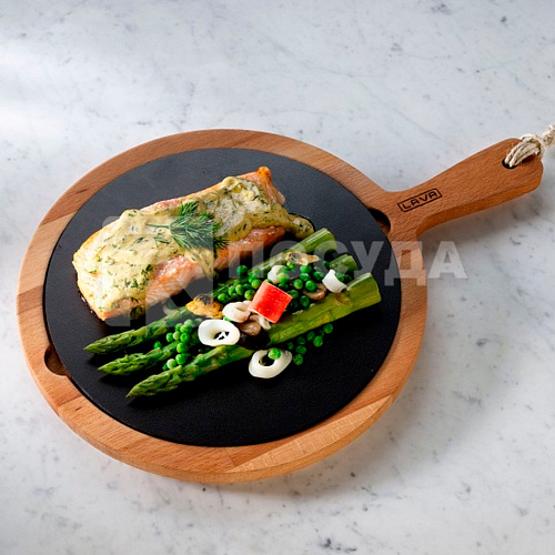 Вы можете дешево купить крупным и мелким оптом Блюдо чугун на деревянной подставке с ручкой d25.5см LAVA (артикул LV AS 271 IR) от производителя LAVA