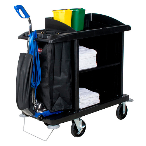 Вы можете дешево купить крупным и мелким оптом Тележка 124,5x55,9 см, H=127 см, уборочная для гостиниц средняя, цв.черный, Rubbermaid (артикул FG619000BLA) от производителя Rubbermaid